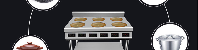 XZ-LBZL210圆头六头电陶炉,快餐外卖抢着买,一炉百烹快速出餐。煎炒焖煮煲等各样花式,样样行,单头3500W大火力实现快速出餐不等待做菜重要的就是火候,火力不足一切都是白搭。