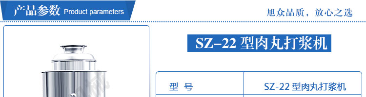 SZ-22型肉丸打浆机,本机装肉用桶子采用不锈钢制造,达到卫生要求,肉桶外罩和桶底装有冷却装置,确保肉浆新鲜。比手工的打浆更精细,所产肉丸、鱼丸弹性好,色泽洁白。
