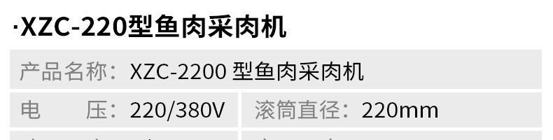XZC-160型鱼肉采肉机,去刺干净、高效出肉。加工鱼肉去刺、蟹虾去壳等。手工去鱼刺太累了,传统的鱼糜加工中,手工去鱼皮鱼刺,既费时又费力不小心就会伤到手。